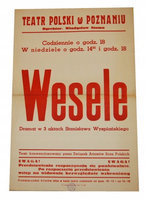 Wesele film fabularny w reżyserii Andrzeja Wajdy z 1973 roku będący ekranizacją dramatu Stanisława Wyspiańskiego pod tym samym tytułem. 3100 Supeł małżeński plakat teatralny R. Kolekcja plakatów autorstwa najlepszych polskich artystów m in. 16 innych produktów w tej samej.